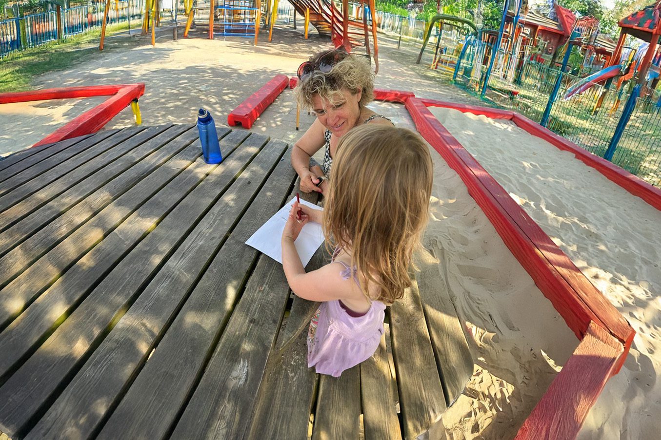 Waar mogelijk gaan we naar buiten. Wandelen, spelen of gewoon samen zitten in het park helpt kinderen ontspannen en praten gaat vaak vanzelf.